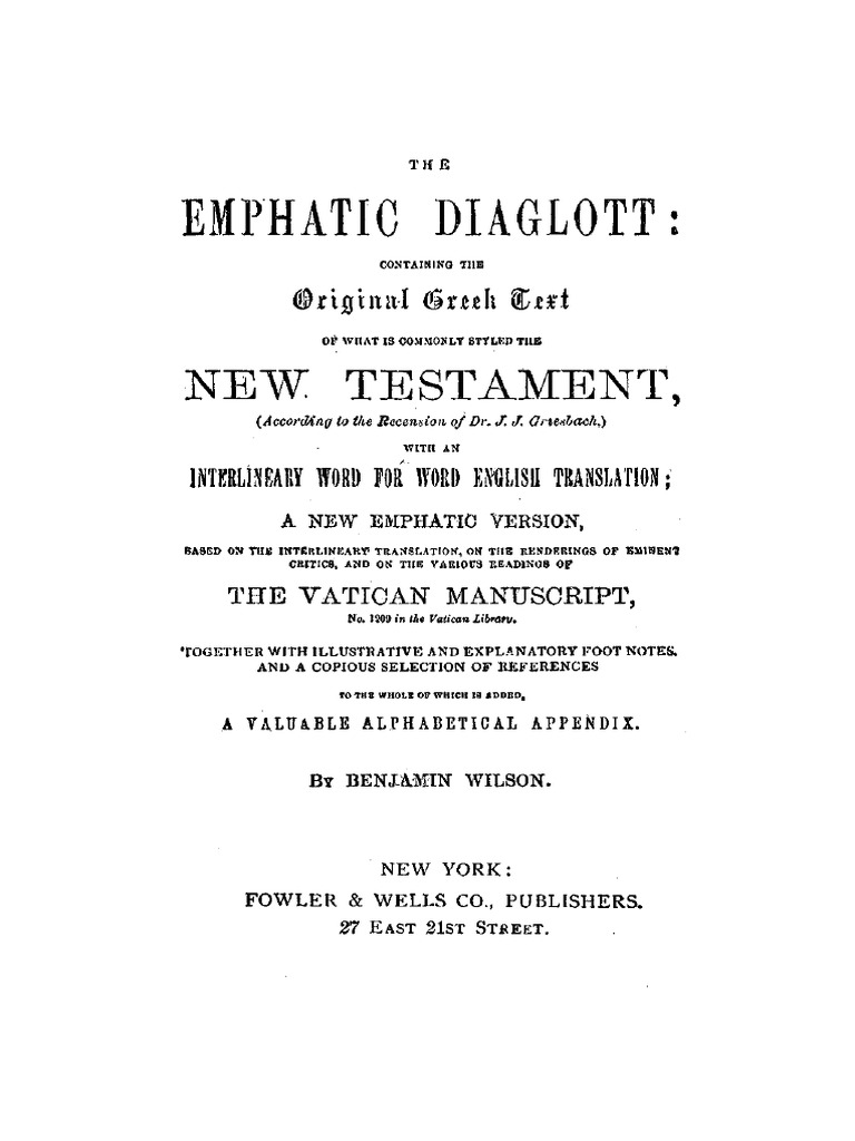 1864 Emphatic Diaglott Pdf Linguistic Typology Linguistics